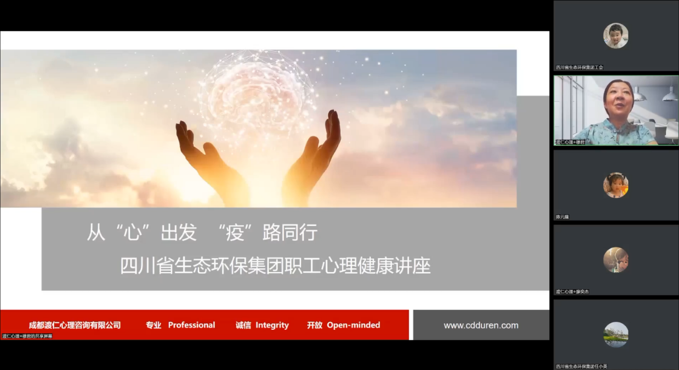 为进一步做好疫情防控下的职工关爱工作,切实提高职工身心素质和心理健康水平,为公司各项工作推动提供坚实保障,2022年9月9日下午,四川省生态环保集团工会采取网络视频会议的形式组织开展职工心理健康培训讲座。公司党委委员、职工董事、工会主席张文出席并主持,在蓉办公企业全体员工以及非在蓉办公直属企业工会负责人和员工代表共计437人参加会议。